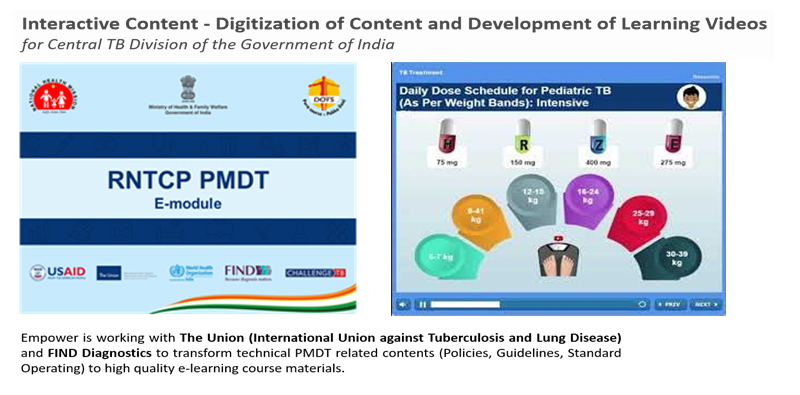 The Union (International Union against Tuberculosis and Lung Disease) and FIND Diagnostics required to transform technical PMDT related contents (Policies, Guidelines, Standard Operating Procedures for Central TB Division of the Government of India) into high-quality e-learning course materials.